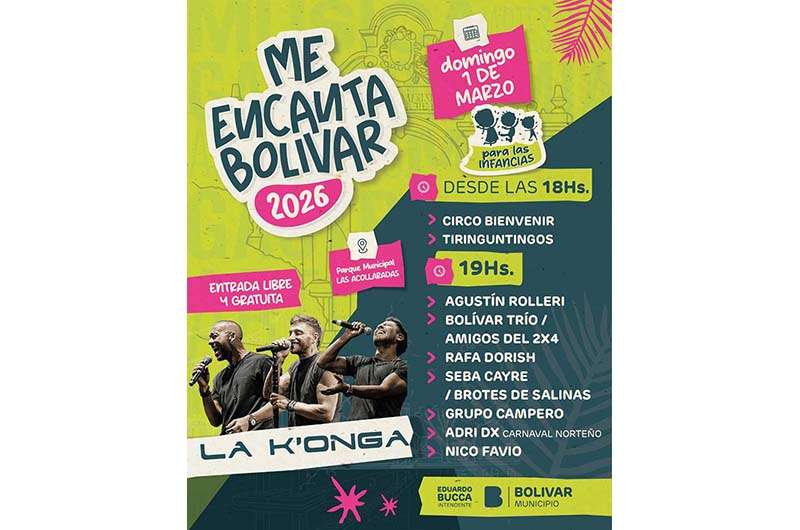 Será un evento que congregará como es habitual a miles de bolivarenses y gente de la región. Me EnCanta Bolívar se consolida como uno de los eventos culturales más convocantes del centro de la provincia, ofreciendo un espacio de encuentro que promueve la música, la identidad local y la participación de la comunidad en el marco del aniversario de la ciudad.