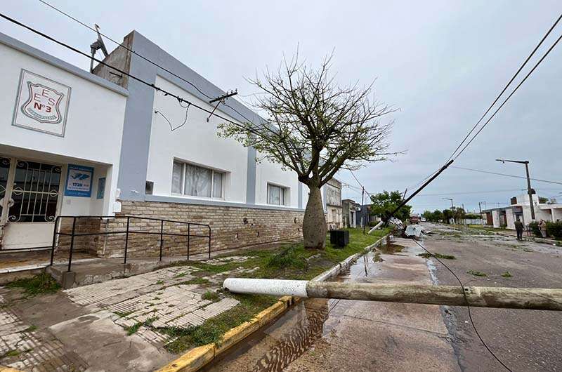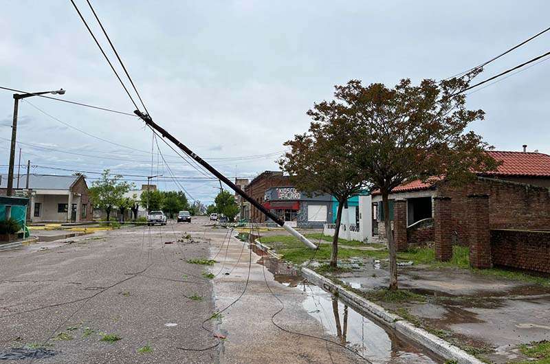 Durante la madrugada, Urdampilleta fue afectada por un fuerte temporal que dejó 140 milímetros de lluvia hasta las 4.30 hs, provocando la caída de más de 100 postes del tendido eléctrico, 40 árboles de gran porte y daños en más de 50 viviendas, con techos, mamposterías y portones destruidos.