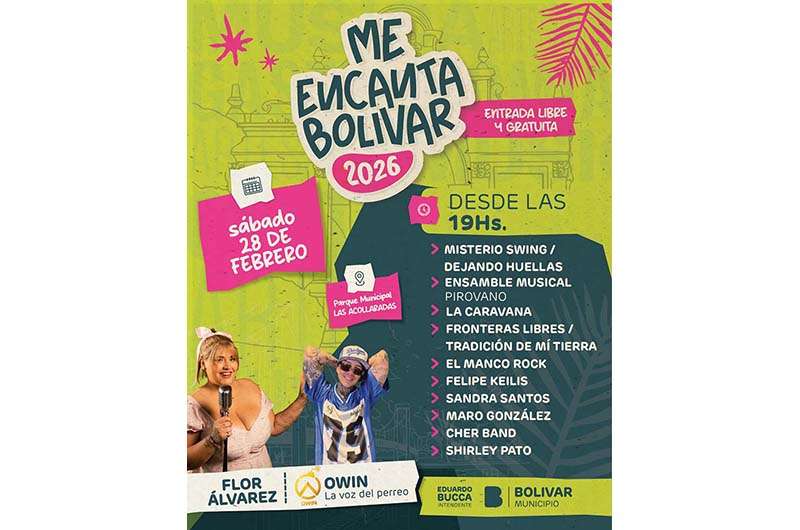 Será un evento que congregará como es habitual a miles de bolivarenses y gente de la región. Me EnCanta Bolívar se consolida como uno de los eventos culturales más convocantes del centro de la provincia, ofreciendo un espacio de encuentro que promueve la música, la identidad local y la participación de la comunidad en el marco del aniversario de la ciudad.