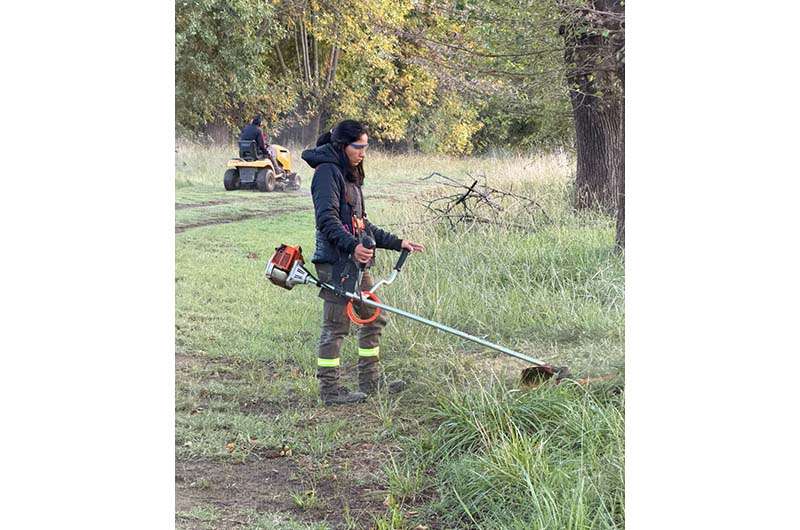 Las tareas incluyeron desmalezado con maquinaria pesada como tractor y moscato, corte con bordeadoras, poda de ramas secas, retiro de residuos y limpieza general de los espacios comunes, logrando una mejora integral del entorno urbano.