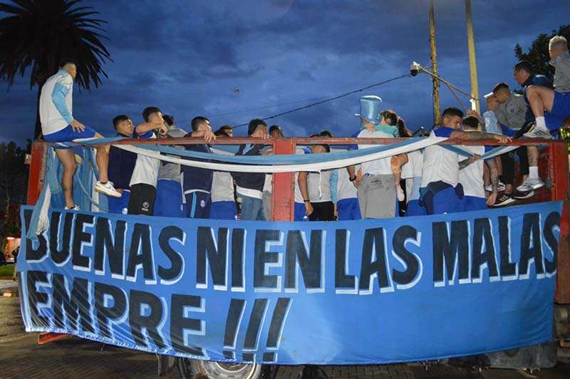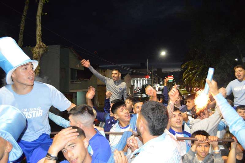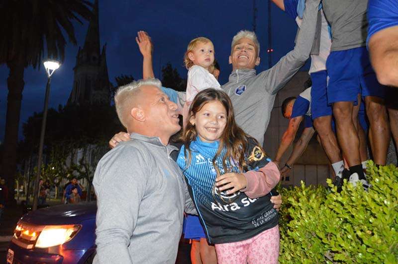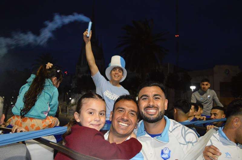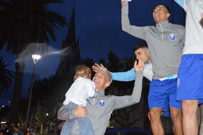 La gente se sumaba a la caravana a lo largo de su recorrido y los vecinos salían a saludar al paso de los jugadores, manifestando su cariño y agradecimiento.