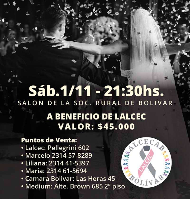 Tendrá lugar este próximo sábado 1 de noviembre “La boda del año”. Se trata de un evento solidario que simulará una fiesta de casamiento, con un objetivo claro: recaudar fondos para la adquisición de un nuevo mamógrafo para ALCECAB, una herramienta indispensable para la detección precoz del cáncer de mama.