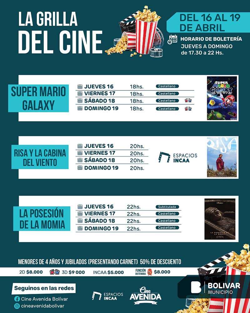 En la cartelera, se destaca “Super Mario Galaxy”, una opción ideal para toda la familia, con funciones a las 18 horas: jueves y viernes en formato 2D en castellano, y sábado y domingo en 3D, también en castellano.