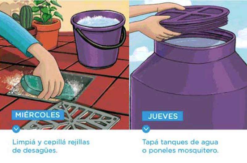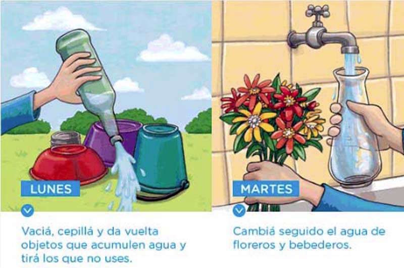 Todos los días podemos hacer algo para prevenir los criaderos del mosquito transmisor de zika, dengue y chikungunya. Conocé las simples acciones que podés realizar de lunes a domingo, repetilas semanalmente y cada vez que llueva.