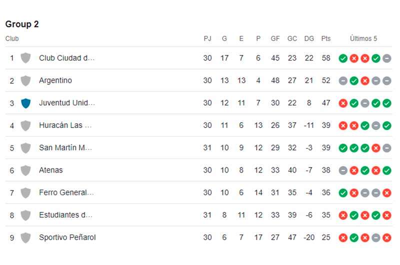 Cuando restan solo dos fechas para el final de la ronda clasificatoria, Ciudad se ubica primero en el grupo 2 con seis puntos de diferencia sobre su perseguidor Argentino de Monte Maíz.